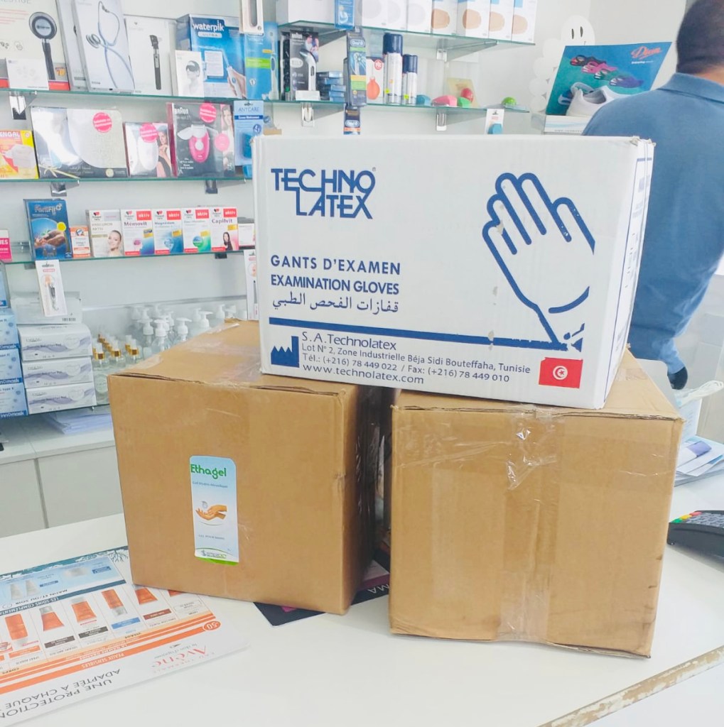 Vendredi 20 août 2021, nous avons remis un important lot de matériels de protection à l’hôpital Abderraham de Tunis afin d’aider le pays dans la lutte contre l’épidémie de la Covid 19. Les dons ont été préparés et acheminés par le biais de notre partenaire Tunaide en présence de la bénévole Imen. Un grand merci aux membres, bénévoles et sympathisants donateurs de l’association.