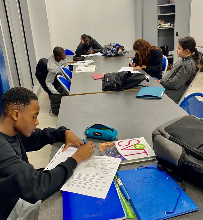 Lancement ce jeudi après-midi 05/01/23, du soutien scolaire collectif renforcé à destination d’un petit groupe de collégiens et lycéens afin de combler les lacunes du premier trimestre. Ce suivi pédagogique renforcé se déroulera tous les jeudis après-midi (17h30/19h30) au Tep Amandiers Paris 20.