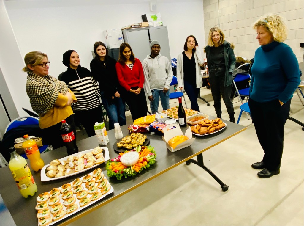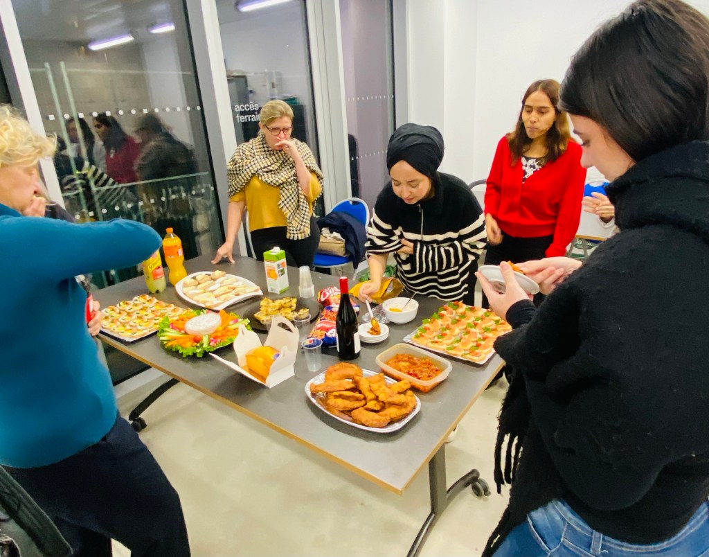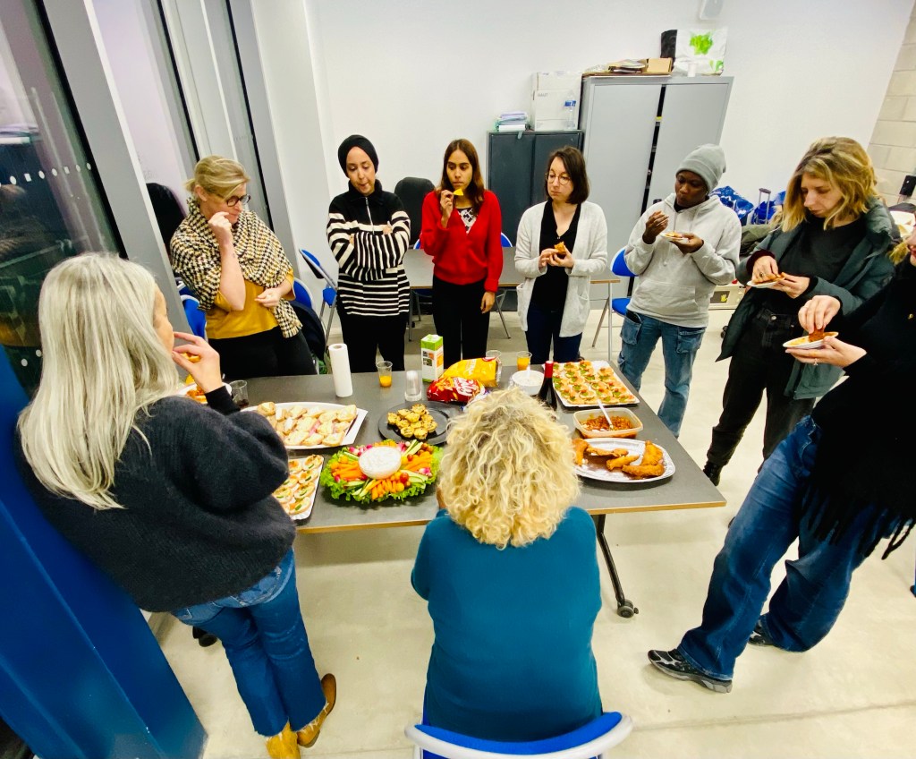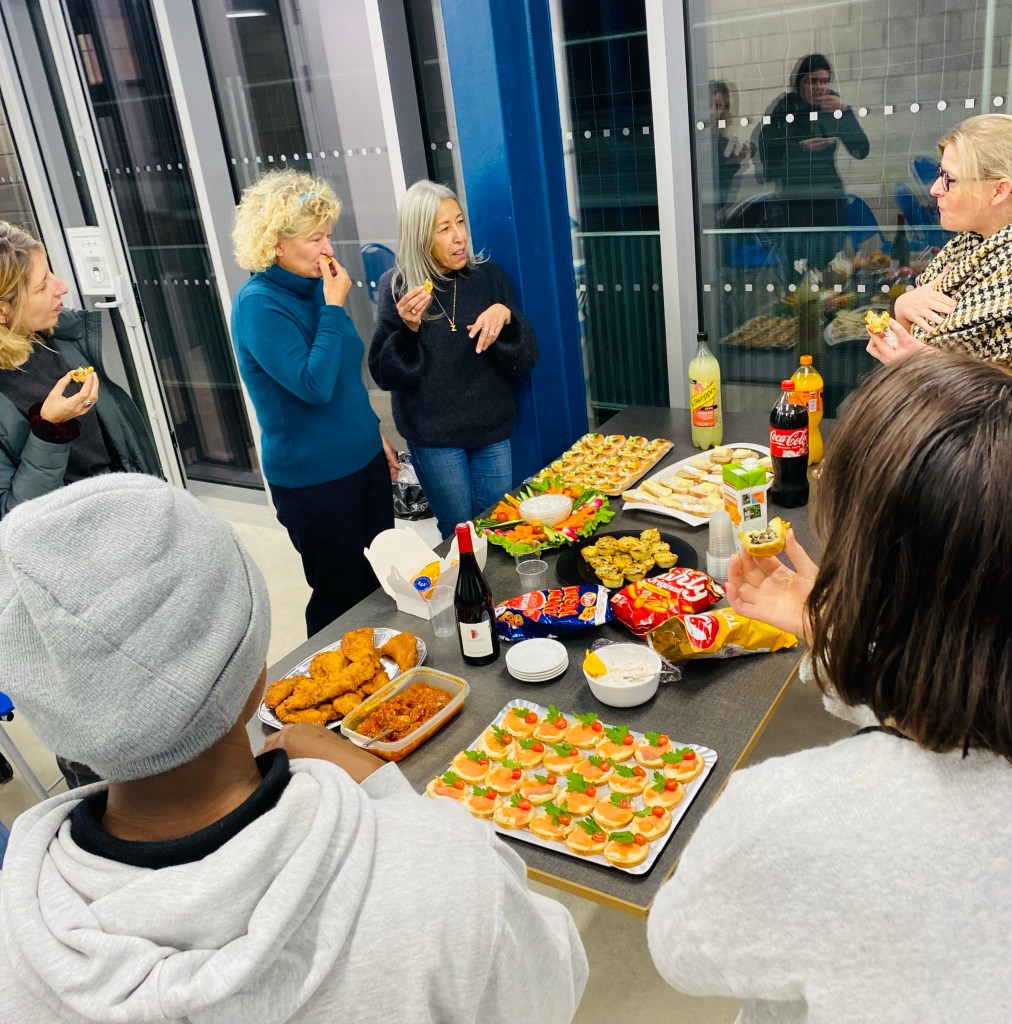 Ce mercredi 13/12/23, l’équipe pédagogique du groupe Paris 20 a tenue une réunion-apéro après le soutien scolaire collectif au Tep Amandiers Paris. Un moment convivial d’échanges entre bénévoles autour d’un buffet bien garni.