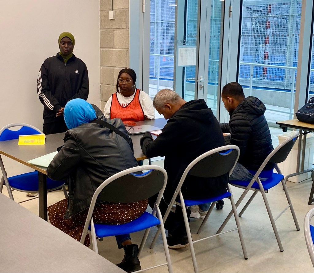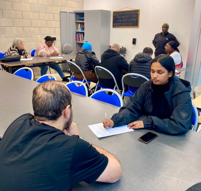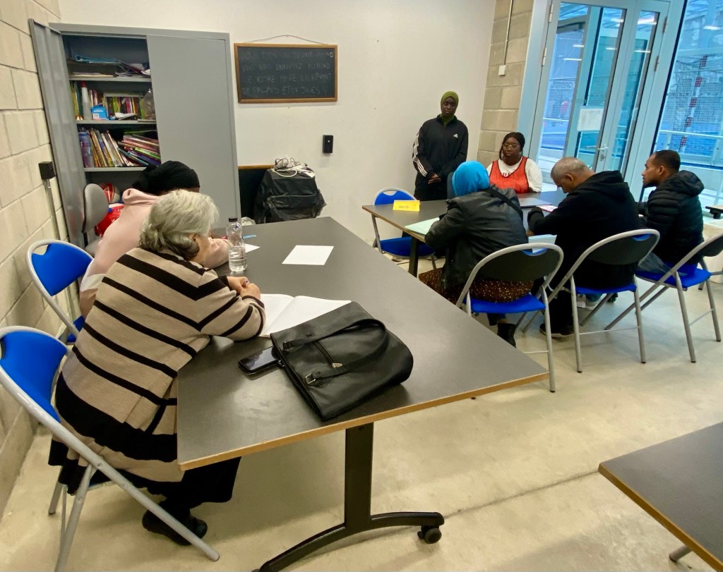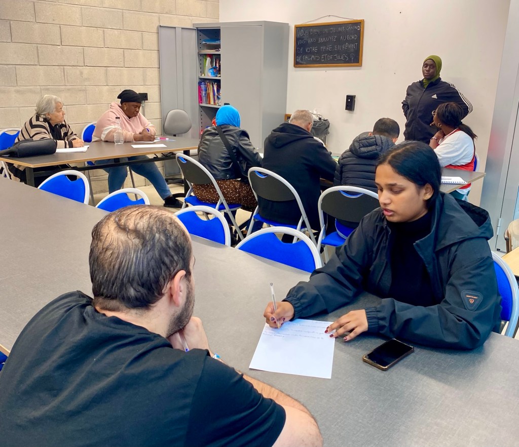 Comme tous les jeudis et samedis (17h30-19h), les adultes étaient accueillis ce 25/09/25 au Centre sportif Angélique Duchemin Paris 20, pour l’atelier d’alphabétisation et FLE.