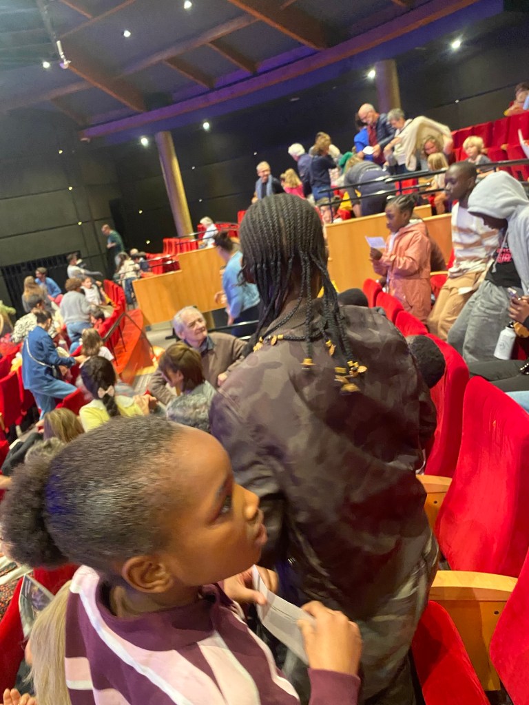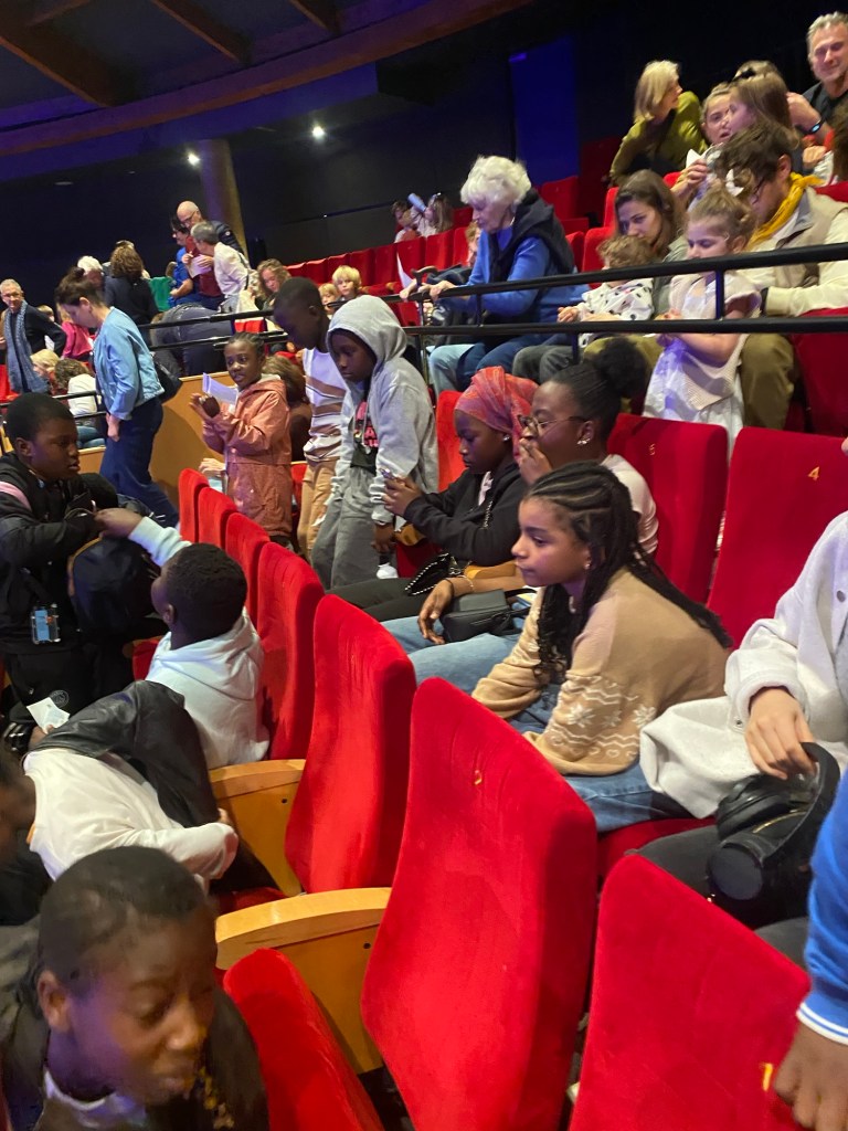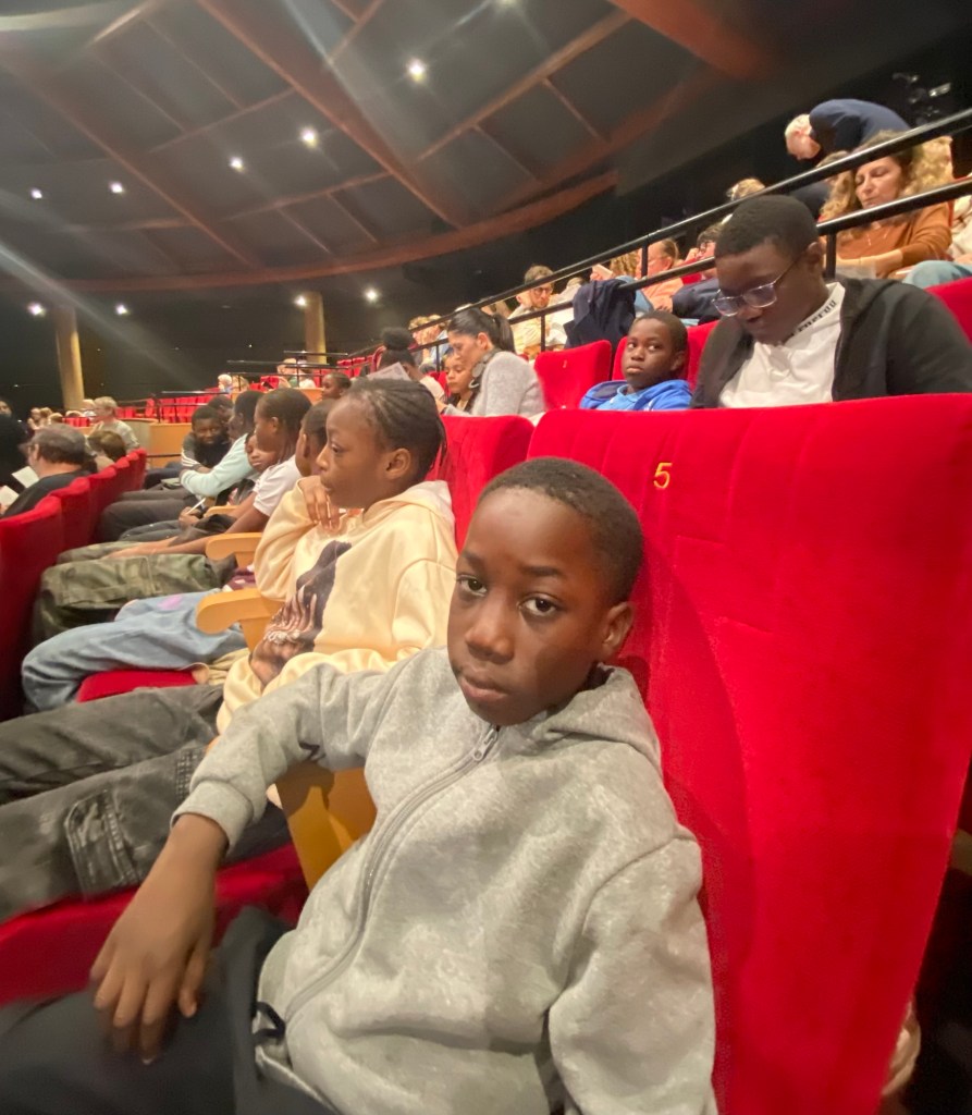 Ce dimanche 12/10/25, une vingtaine d’enfants et 3 bénévoles accompagnateurs ont assisté au Théâtre du Rond-Point Paris 08, au spectacle Ulysse, majestueuse pièce fluide et pleine d’énergie interprétée par des jeunes étincelants, rivalisants d’intelligence et d’expressivité.